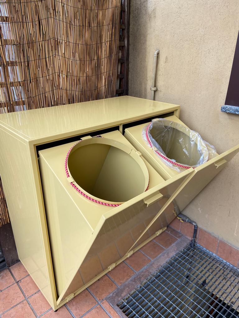 Strutture resistenti e discrete per la raccolta differenziata, ideali per mantenere ordinato ogni spazio esterno.