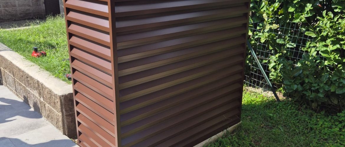 Per questo intervento il cliente aveva la necessità di rendere più estetico il motore della pompa di calore posizionato in giardino, una problematica sempre più comune.