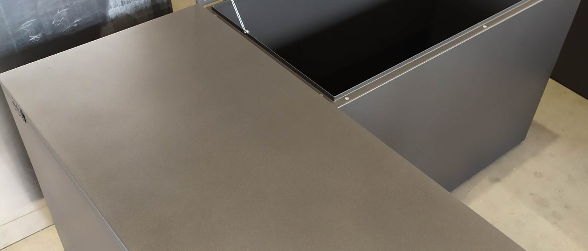 Baule in alluminio 20/10 saldato a TIG e verniciati a forno con polveri poliestere colore GRIGIO FERRO. Adatti a contenere qualsiasi cosa, possono essere lasciati all’esterno sotto pioggia o intemperie in quanto non arrugginiscono.